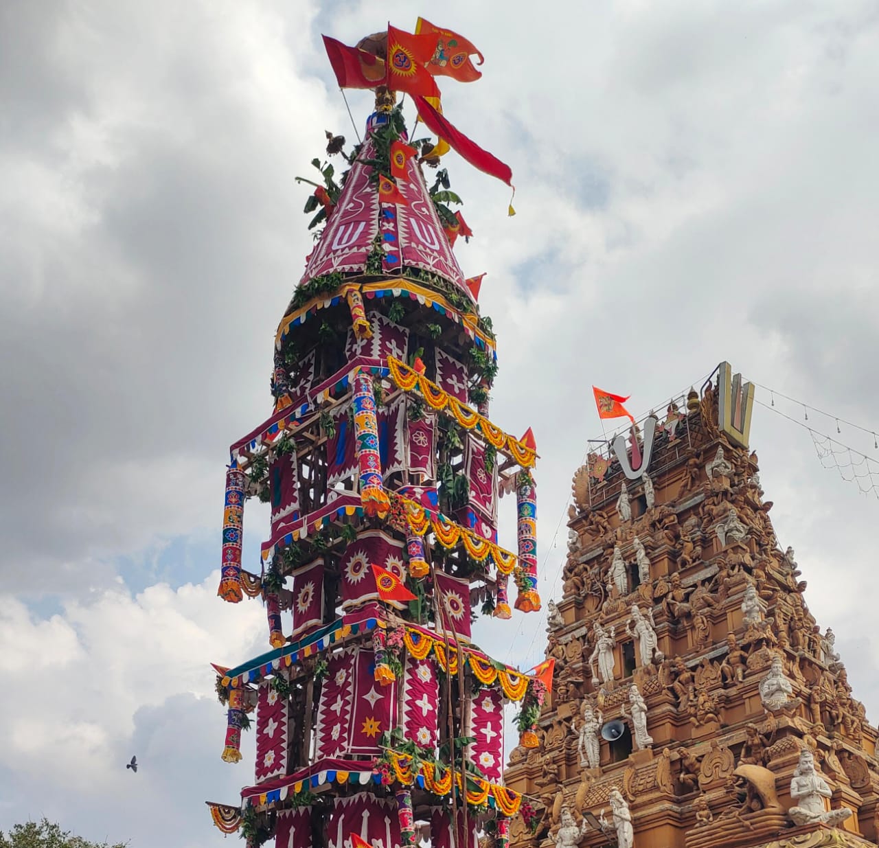 ದೇವರ ಅಲಂಕೃತ ಮೂರ್ತಿಯನ್ನು ರಥದಲ್ಲಿ ಕೂರಿಸಿ ದೇವಾಲಯದ ಸುತ್ತಲೂ ಪ್ರದಕ್ಷಿಣೆ ಮಾಡಲಾಯಿತು.