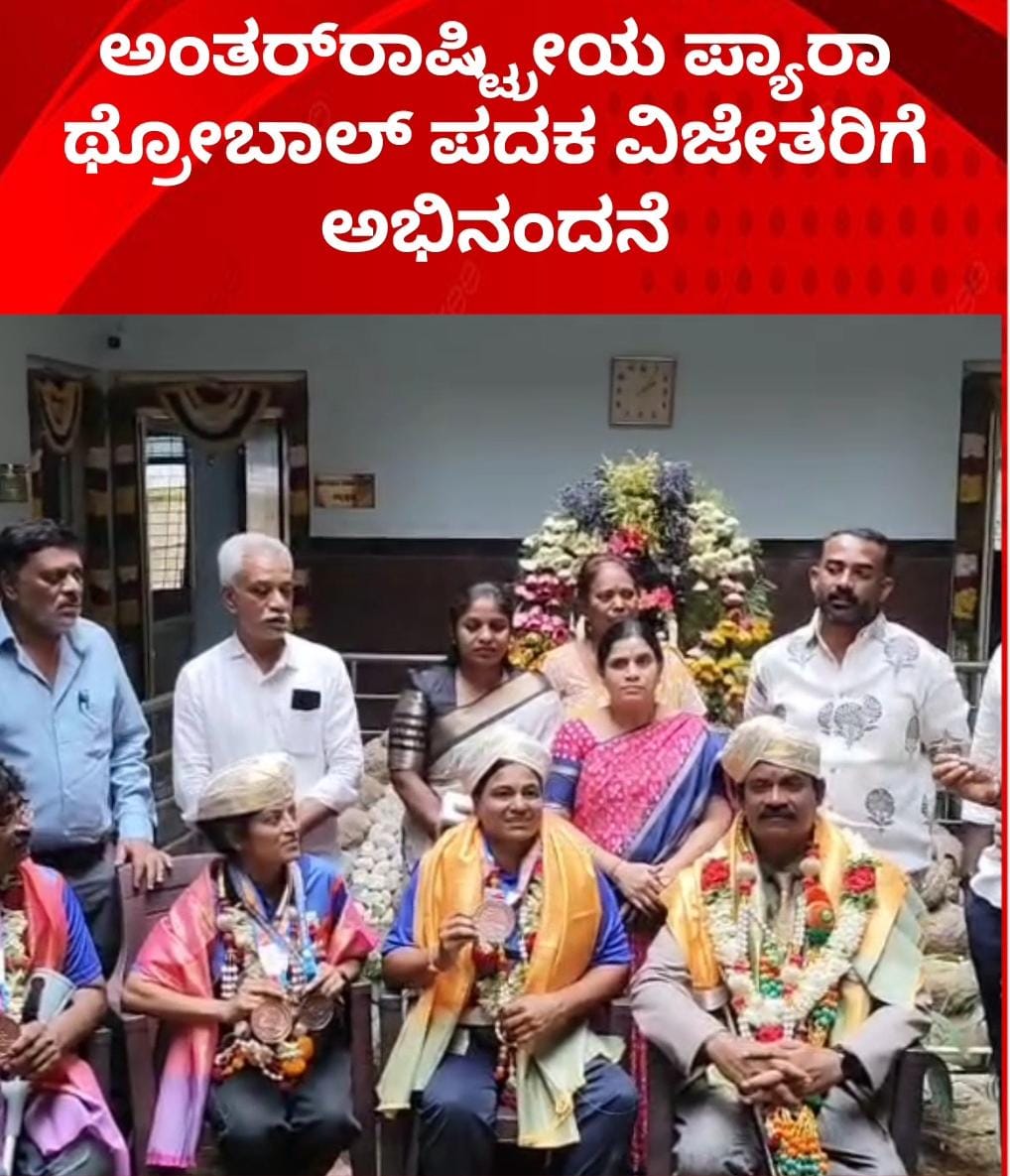 ಕಾಂಬೋಡಿಯಾದಲ್ಲಿ ನಡೆದ ಅಂತರರಾಷ್ಟ್ರೀಯ ಮಟ್ಟದ ಪ್ಯಾರಾ ಥ್ರೊ ಬಾಲ್ ಚಾಂಪಿಯನ್ ಶಿಪ್ನಲ್ಲಿ ಕಂಚಿನ ಪದಕ ಪಡೆದ ಕ್ರೀಡಾಪಟುಗಳಿಗೆ ಆನೇಕಲ್ ನಲ್ಲಿ ಸನ್ಮಾನಿಸಲಾಯಿತು.