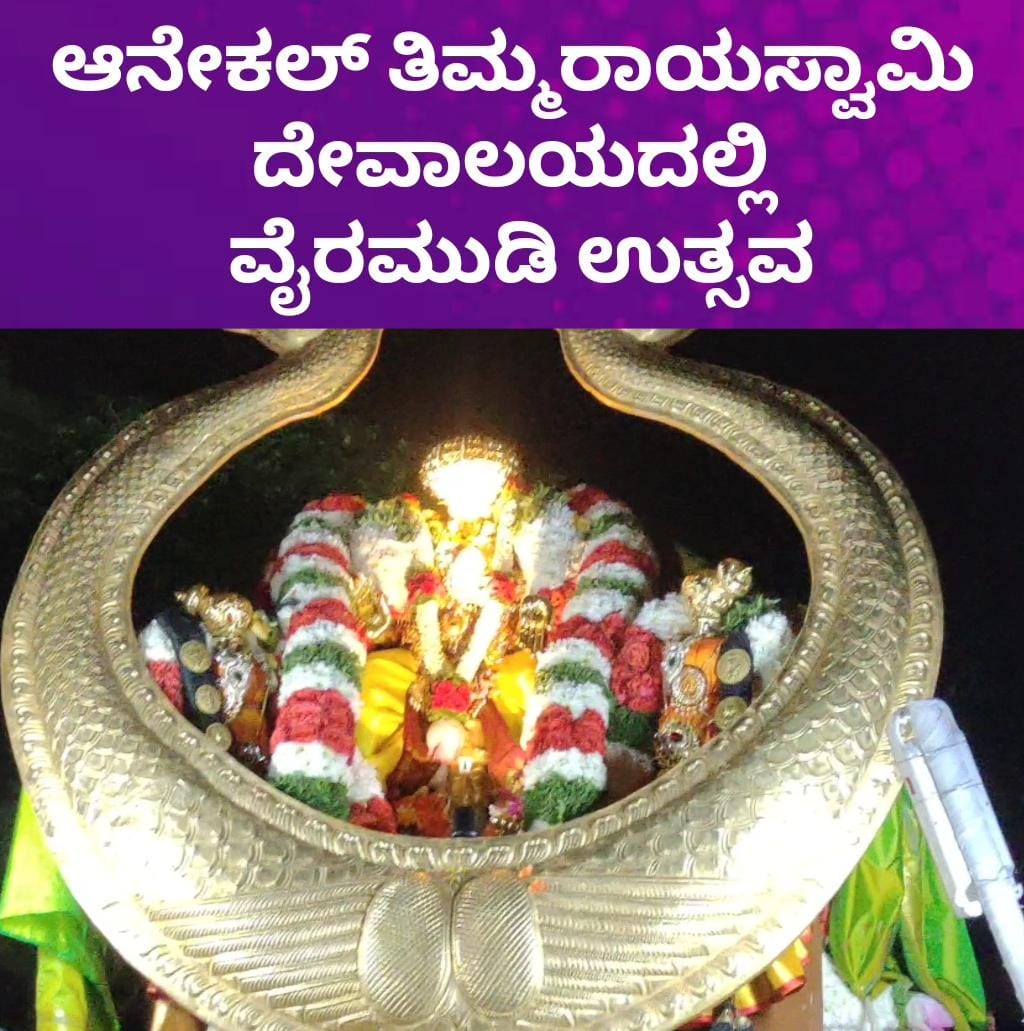 ಆನೇಕಲ್ ಪಟ್ಟಣದ ತಿಮ್ಮರಾಯಸ್ವಾಮಿ ದೇವಾಲಯದಲ್ಲಿ ವೈರಮುಡಿ ಉತ್ಸವವನ್ನು ಆಯೋಜಿಸಲಾಗಿತ್ತು. ಆನೇಕಲ್ ನ ಪದ್ಮನಾಭ ರವರ ಕುಟುಂಬದಿಂದ ವೈರಮುಡಿ ಉತ್ಸವವನ್ನು ಆಯೋಜಿಸಲಾಗಿತ್ತು.