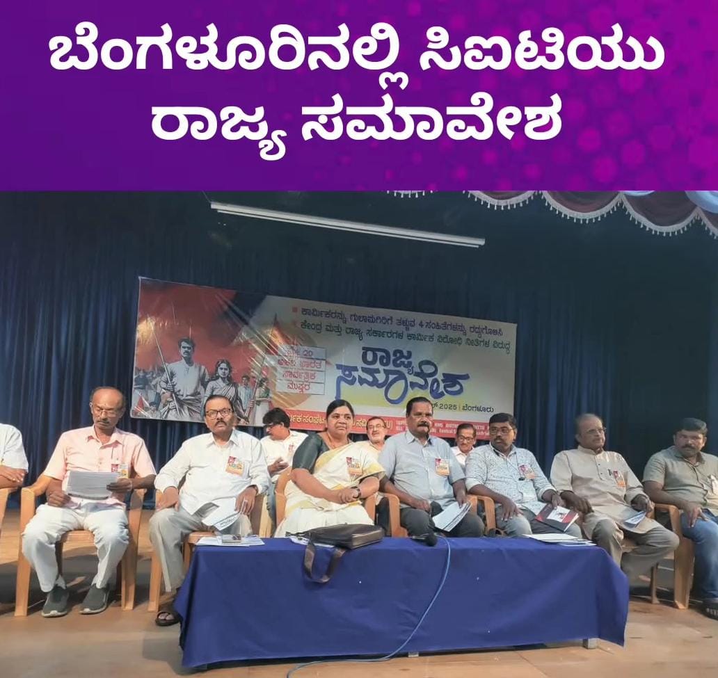 ಬೆಂಗಳೂರಿನಲ್ಲಿ ಸಿಐಟಿಯು ವತಿಯಿಂದ ಇಂದು ರಾಜ್ಯ ಸಮಾವೇಶ ಆಯೋಜನೆ ಮಾಡಲಾಗಿತ್ತು. ರಾಜ್ಯದ ವಿವಿಧ ಜಿಲೆಗಳ ಸಿಐಟಿಯು ಮುಖಂಡರು ಹಾಗೂ ಕಾರ್ಯಕರ್ತರು ಸಮಾವೇಶದಲ್ಲಿ ಭಾಗವಹಿಸಿದ್ದರು.