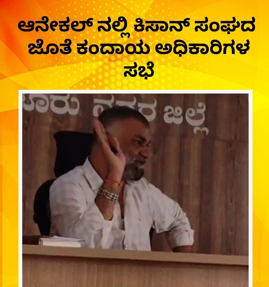 ಆನೇಕಲ್ ಪಟ್ಟಣದ ಪುರಸಭಾ ಸಭಾಂಗಣದಲ್ಲಿ ಆನೇಕಲ್ ತಹಶಿಲ್ಪಾರ್ ಶಶಿಧರ್ ಮಾಡ್ಯಾಳ್ ನೇತೃತ್ವದಲ್ಲಿ ಕಿಸಾನ್ ಸಂಘದ ಸದಸ್ಯರ ಸಭೆ ನಡೆಸಲಾಯಿತು.