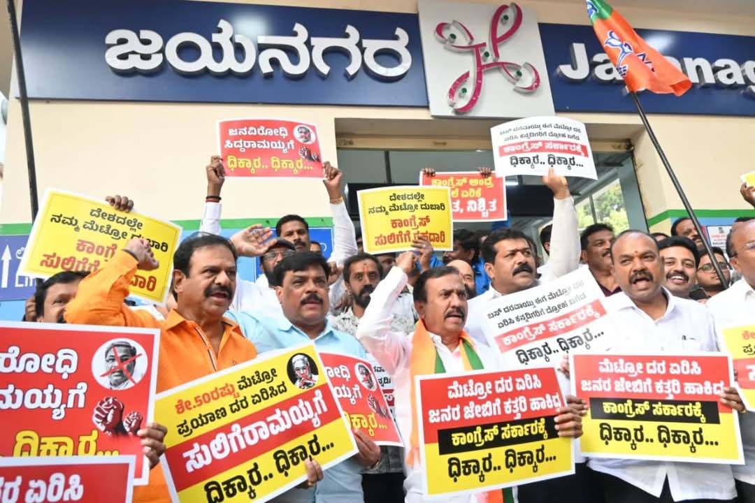 ಜಯನಗರದಲ್ಲಿ ಮೆಟ್ರೋ ಪ್ರಯಾಣದರ ಏರಿಕೆ ಖಂಡಿಸಿ ಶಾಸಕ ರಾಮಮೂರ್ತಿ ನೇತೃತ್ವದಲ್ಲಿ ಪ್ರತಿಭಟನೆ, ಸರ್ಕಾರದ ವಿರುದ್ಧ ಆಕ್ರೋಶ