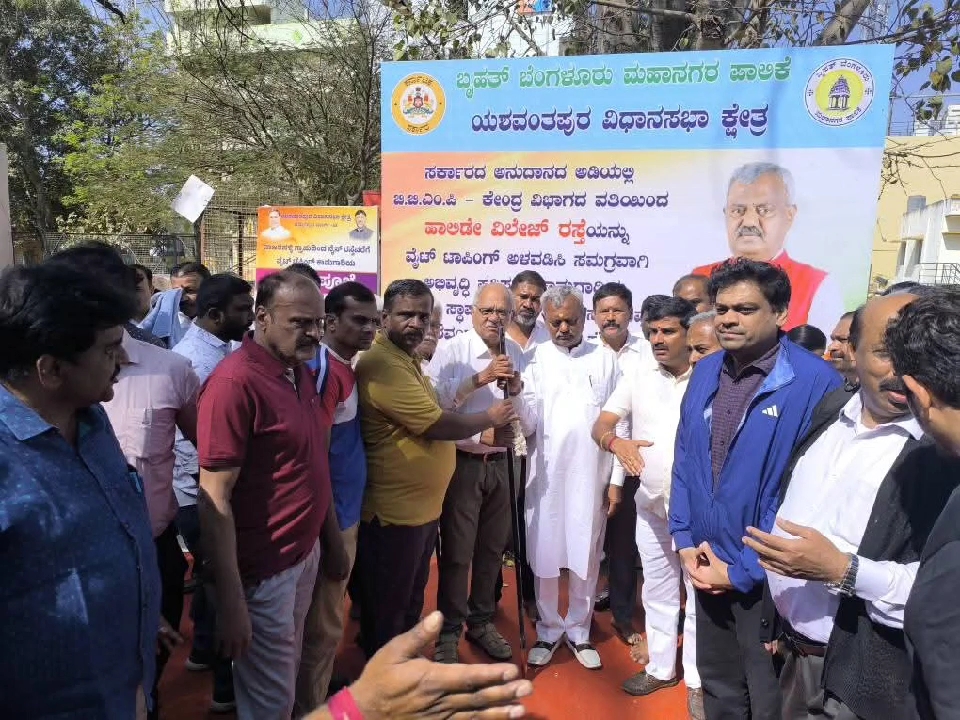 ಯಶವಂತಪುರ ವಿಧಾನಸಭಾ ಕ್ಷೇತ್ರದ ಕನಕಪುರ ಮುಖ್ಯ ರಸ್ತೆಯ ಹಾಲಿಡೇ ವಿಲೇಜ್ ಬಡಾವಣೆಯಲ್ಲಿ 50 ಲಕ್ಷ ವೆಚ್ಚದಲ್ಲಿ ರಸ್ತೆಯ ವೈಟ್ ಟ್ಯಾಪಿಂಗ್ ಕಾಮಗಾರಿಗೆ ಚಾಲನೆ ನೀಡಲಾಗಿದೆ. ಶಾಸಕ ಸೋಮಶೇಖರ್ ಹಾಗೂ ಸ್ಥಳೀಯ ಜನಪ್ರತಿನಿಧಿಗಳು ನೂತನ ಕಾಮಗಾರಿಗೆ ಭೂಮಿ ಪೂಜೆ ನೆರವೇರಿಸಿದರು. ಬಡಾವಣೆಯ ರಸ್ತೆಗಳಲ್ಲಿ ಗುಂಡಿಗಳಾಗಿ ವಾಹನ ಸಂಚಾರಕ್ಕೆ ತೊಂದರೆ ಉಂಟಾಗುತ್ತಿತ್ತು. ಹೀಗಾಗಿ ಬಿಬಿಎಂಪಿ ಹಾಗೂ ಕೇಂದ್ರ ವಿಭಾಗದ ಅನುದಾನದಲ್ಲಿ 50 ಲಕ್ಷ ವೆಚ್ಚದಲ್ಲಿ ನೂತನ ಕಾಮಗಾರಿಗೆ ಇಂದು ಚಾಲನೆ ನೀಡಲಾಗಿದೆ