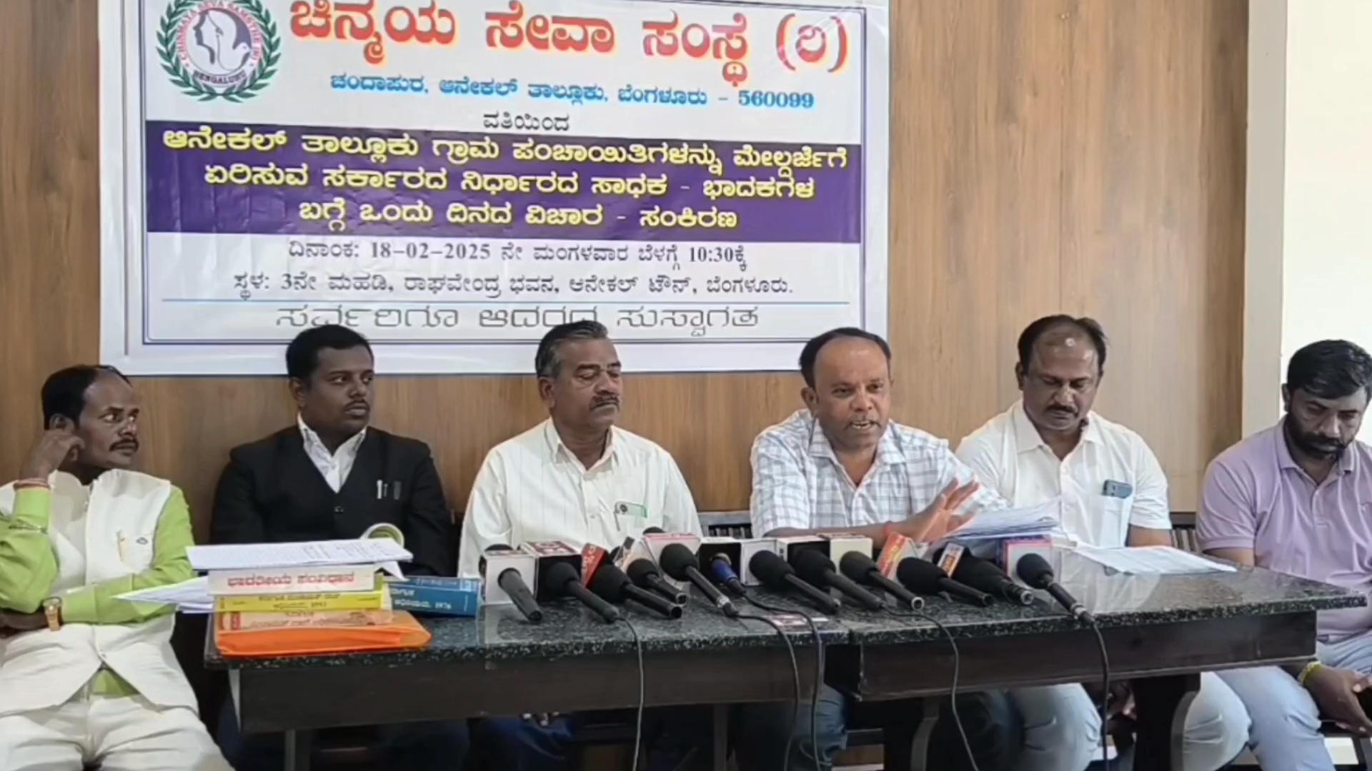 ಆನೇಕಲ್ ತಾಲ್ಲೂಕಿನ 20 ಗ್ರಾಮ ಪಂಚಾಯಿತಿಯನ್ನು ಮೇಲ್ದರ್ಜೆಗೆ ಏರಿಸಲು ಹೊರಟಿರುವ ರಾಜ್ಯ ಸರ್ಕಾರದ ನಡೆಯನ್ನ ಖಂಡಿಸಿ ಆನೇಕಲ್ ಪಟ್ಟಣದಲ್ಲಿ ಚಿನ್ಮಯ ಸೇವಾ ಸಂಸ್ಥೆ ವತಿಯಿಂದ ವಿಚಾರ ಸಂಕೀರ್ಣ ಆಯೋಜಿಸಲಾಗಿತ್ತು. ಗ್ರಾಮ ಪಂಚಾಯಿತಿ ಅಧ್ಯಕ್ಷರು ಹಾಗೂ ಹಲವು ಪ್ರಗತಿಪರ ಚಿಂತಕರು ಕಾರ್ಯಕ್ರಮದಲ್ಲಿ ಭಾಗವಹಿಸಿದ್ದರು. ಯಾವುದೇ ಸೂಕ್ತ ಮಾನದಂಡ ಅನುಸರಿಸದೇ ಗ್ರಾಮ ಪಂಚಾಯಿತಿಯನ್ನು ಪುರಸಭೆ ಹಾಗೂ ನಗರಸಭೆಯಾಗಿ ಸರ್ಕಾರ ಮೇಲ್ದರ್ಜೆಗೆ ಏರಿಸಲು ಹೊರಟಿದೆ. ಇದು ಅವೈಜ್ಞಾನಿಕ. ಈ ನಿರ್ಧಾರದಿಂದ ಸಾರ್ವಜನಿಕರಿಗೆ ತೀವ್ರ ತೊಂದರೆ ಉಂಟಾಗಲಿದ್ದು